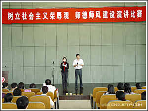 为积极响应胡锦涛总书记在两会上提出的以“八荣八耻”为具体内容的社会主义荣辱观,倡导社会主义基本道德规范,进一步树立良好的师德,5月16日下午,学院在图书馆报告厅举行“树立社会主义荣辱观,师德师风建设演讲比赛”。