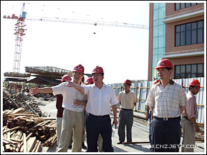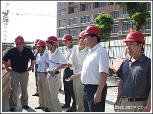 施工方杭州建工集团公司管理人员向学院领导介绍了二期工程开工以来的有关情况。二期工程自5月26日开工建设以来,在施工单位和学院有关部门的努力下,现场管理到位,施工进度正常,各项工作有条不紊。