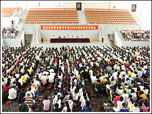 9月14日上午,学院2006级新生开学典礼在体育馆隆重举行。出席开学典礼的有学院党政领导童学敏、李曙明、潘素芳、周文根、卢显林、潘新华、王建华,各行政处室、系部负责人,辅导员和新生班主任。二千五百多名来自全国各地的新生参加了典礼。大会由学院副院长周文根主持。