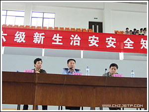 9月15日上午,学院在体育馆为2006级新生举办治安安全知识讲座。杭州市公安局下沙分局经济文化保卫大队耿警官列举大量案例就校园治安问题、学生安全自我防范问题讲了生动的一课,广大新生受益匪浅。会上学生处处长许兴苗希望全体新生积极进取,勤学苦练,早日成材。保卫处处长陈满潮联系本院的实际案例,要求大家自觉遵纪守法,并提醒大家注意交通安全、消防安全、出游安全、财物安全。他要求每位学生增强自我防范意识,让家长、学校放心。