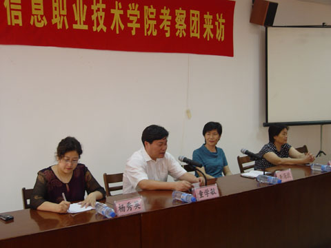 7月13日,上海电子信息技术学院党委书记李海政率考察团一行50余人来我院考察访问,学院党委书记童学敏、副书记潘素芳向来宾介绍了学院的发展情况,考察团观看了学院宣传片并参观了校园。院办、人事处、学生处等部门与上海电子信息职业技术学院相关部门开展了对口交流。