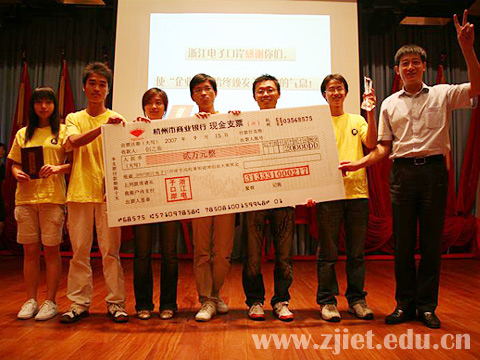 最后,获奖选手依次上台接受证书和奖金,我院“创之旅”团队和 “BACKHOME”团队纷获团队第一名和第三名的好成绩,拿到万元大奖。信息技术系闻春根、程聪、季正伟三名同学则包揽了大赛个人前三名。我院因其在本次大赛中所表现的出色组织能力,被授予“最佳组织奖”。