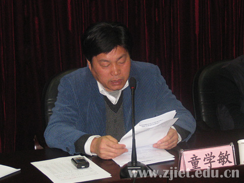 童学敏书记代表学院领导班子作了2009年度述职述廉报告。他指出,2009年,在省委教育工委、省供销社党委的正确领导下,学院深入学习实践科学发展观,紧紧围绕省级示范性项目建设工作,紧密结合学院改革发展实践,以学院第一次党代会的召开为契机,解放思想、实事求是、锐意创新,全面推进学院各项建设,较好地完成了各项年度工作任务。童书记主要从五个方面对学院取得的成绩作了汇报,一是深入学习实践科学发展观活动有序开展,党建和思想政治工作取得明显成效;二是加强院系领导班子建设,整体素质和能力明显增强;三是抓紧省级示范性院校项目建设,学院教学改革和内涵建设深入推进有成效;四是切实转变学生管理理念,学生管理工作主动、服务到位;五是深化校园文化建设,文明单位、平安校园常态化工作机制运转有效。童书记同时指出,在取得较大成绩和进步的同时,应该看到我们的工作存在不少问题和困难,我们还要付出更多的努力。最后童书记指出,2010年,学院将接受省级示范性高职学院建设项目的中期检查,这既是一个严峻的挑战和考验又是一次发展的良好机遇,我们必须增强克难攻坚的信心,以建设学习型党组织为抓手,以建设省级示范性高职学院为契机,以建设和谐校园为载体,坚持以人为本,完善依法治校,加强民主管理,凝众心聚合力,推进学院科学和谐发展。