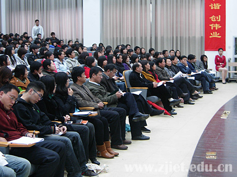 会上,院长助理蒋丽君作动员讲话。她指出,开展深化学风建设年活动,是学院建设省级示范高职院的一项重要举措,对进一步加强内涵建设、提升广大学生的综合素质和就业能力具有十分重大的意义。我们要在总结经验的基础上,不断创新,强化特色,以优良教风带学风,以目标教育激学风,以规范管理促学风,以校园文化育学风。最后她提出四点希望和要求:第一,切实提高思想认识。各部门、全体师生员工必须充分认识深化学风建设的重要性,采取有效措施,把学风建设作为一项基础工作、一项系统工程真抓实干,常抓不懈。第二,充分发挥教师主导作用。学风建设教师是关键,要不断加强师德师风建设,以优良教风带学风。第三,积极发挥学生主体作用。全体学生要牢固树立责任意识,积极进取,科学规划,刻苦学习,努力提高学习能力和自身综合素质,成长成才。第四,各管理部门要树立为教学服务的思想,按照活动总体部署和具体安排,各司其职,为师生的工作、学习和生活提供优质便捷的服务。