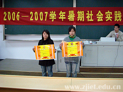 会上,学院团委副书记刘建望老师宣读了表彰文件。工商管理系团总支和人文旅游系团总支被评为2006-2007年暑期社会实践最佳组织奖。本次表彰大会还表彰了6个优秀小分队,40名暑期社会实践先进个人及9篇暑期社会实践优秀论文。暑期社会实践先进个人代表和优秀小分队的代表分别介绍了各自实践活动的内容和经验。最后,院团委书记吴刚群老师做了讲话,鼓励大家一定要继续努力,深入社会,在社会的大熔炉里磨砺青春,成就梦想。暑期社会实践表彰大会不仅是对过去成绩的总结与表彰,更是对广大学生积极投身社会,投身实践的鼓励。