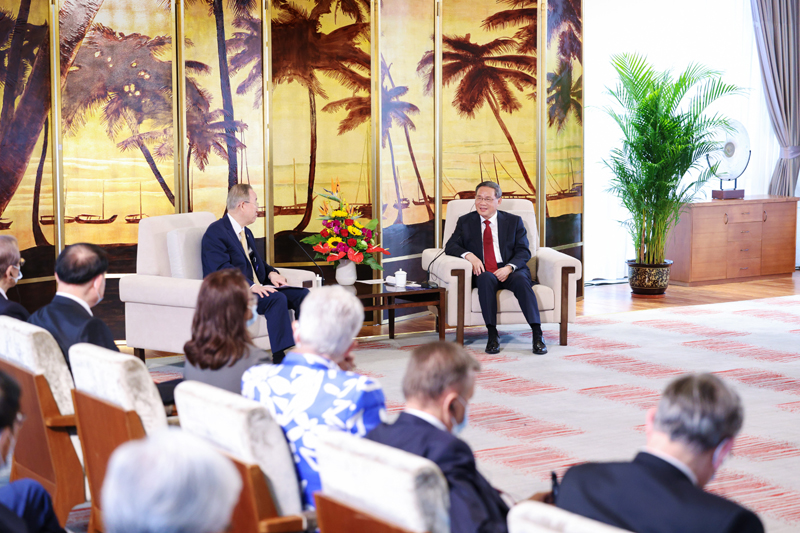 3月29日,国务院总理李强在海南博鳌会见博鳌亚洲论坛理事长潘基文等理事会成员、论坛咨询委员会和战略合作伙伴代表。新华社记者 刘彬 摄