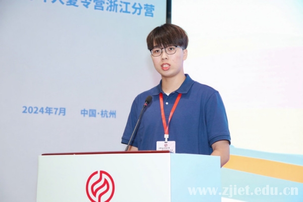 台湾辅仁大学学生赖映辰代表全体营员发言。他表示,在浙江海外联谊会、浙江省台联和学校的精心组织与周到安排下,非常期待通过此次夏令营活动,结识更多好朋友,彼此分享经验,拓展视野、深化友谊,强化与经贸学子的互动交流,促进两岸融合发展。